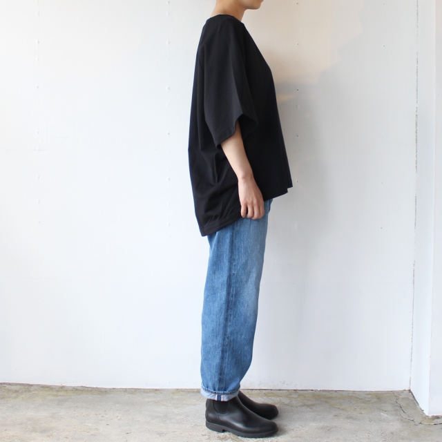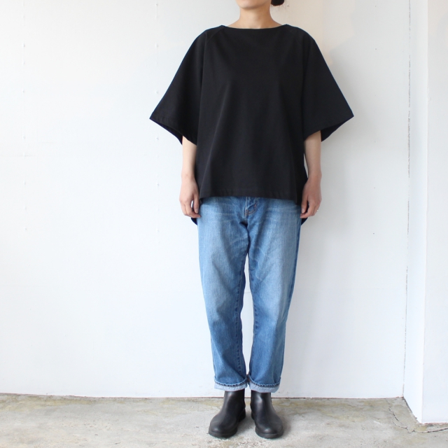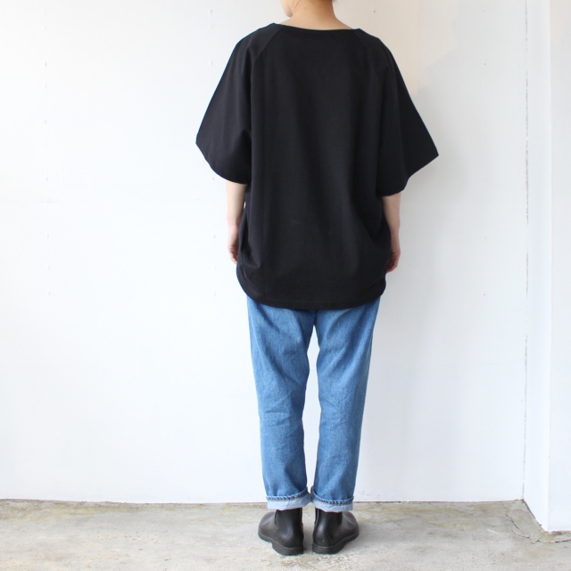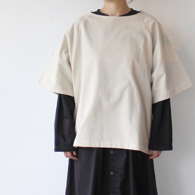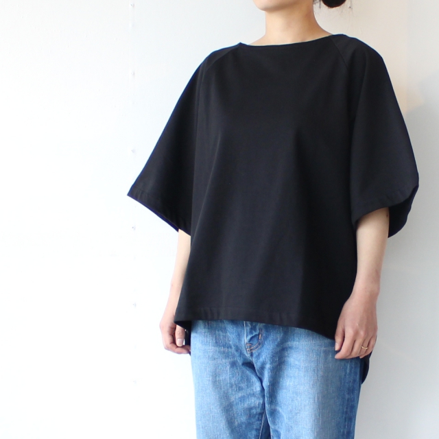 袖は5分袖、着丈は前後で長短差がありアクセントになったカットソー。