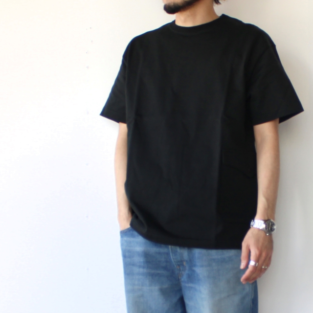 ゆったりしたシルエットに左脇のカーゴポケットが特徴的なカットソー。