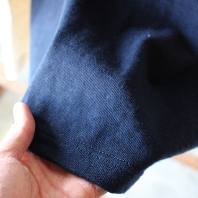 肩を最後に縫製する仕様でアームホールをずらしたつくりになっています。