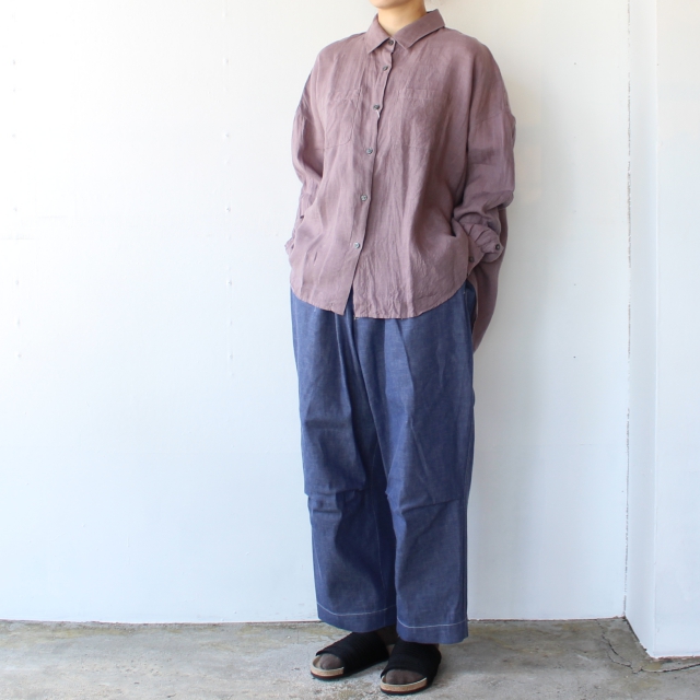 リネン素材を使用しており、風通しが良く、長く着るほど馴染む軽やかな着心地。