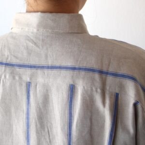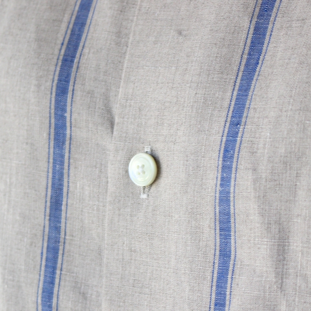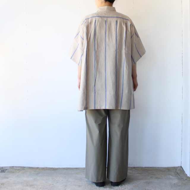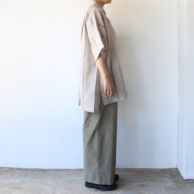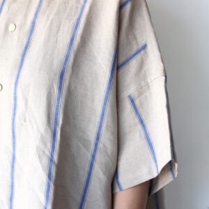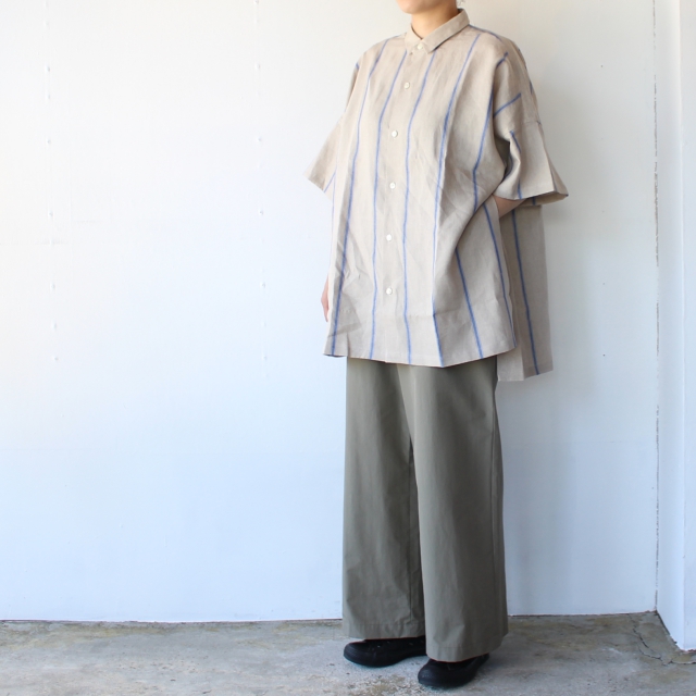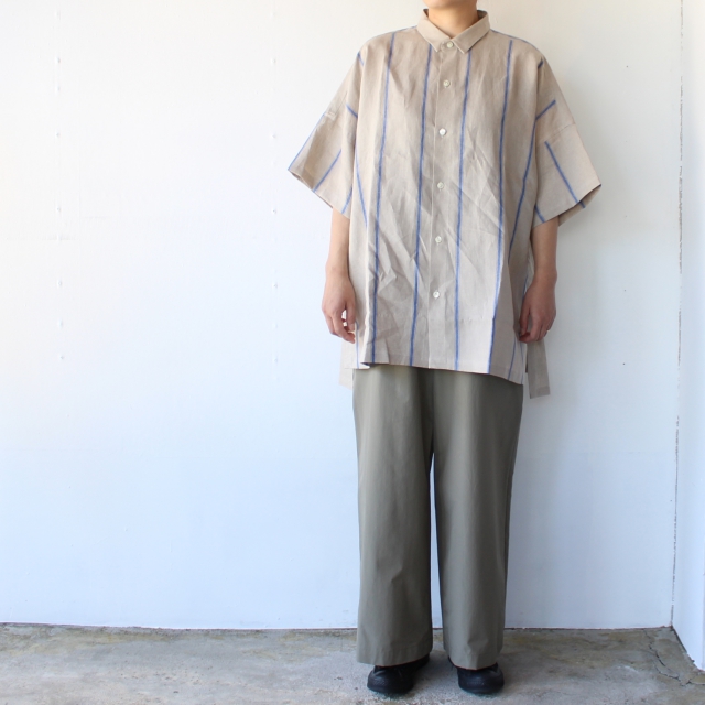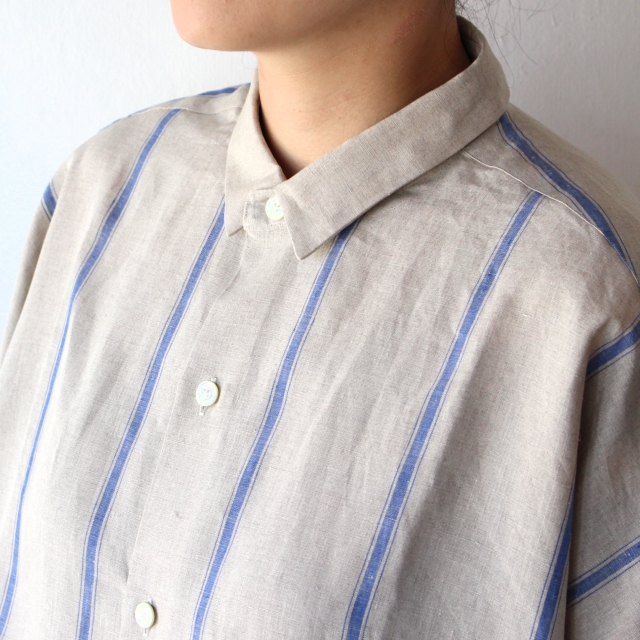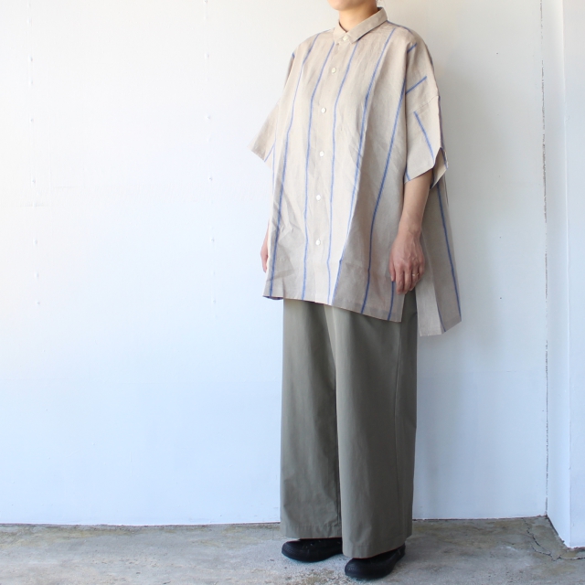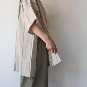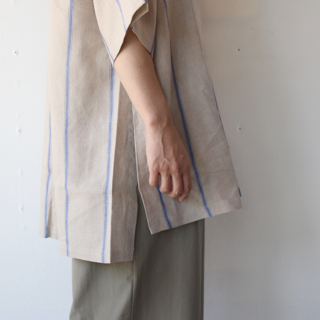 HAVERSACKよりリネンストライプサイドスリットシャツ。