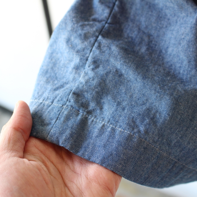 生地は5オンスのシャンブレーで、シャツのような軽い素材感。