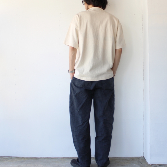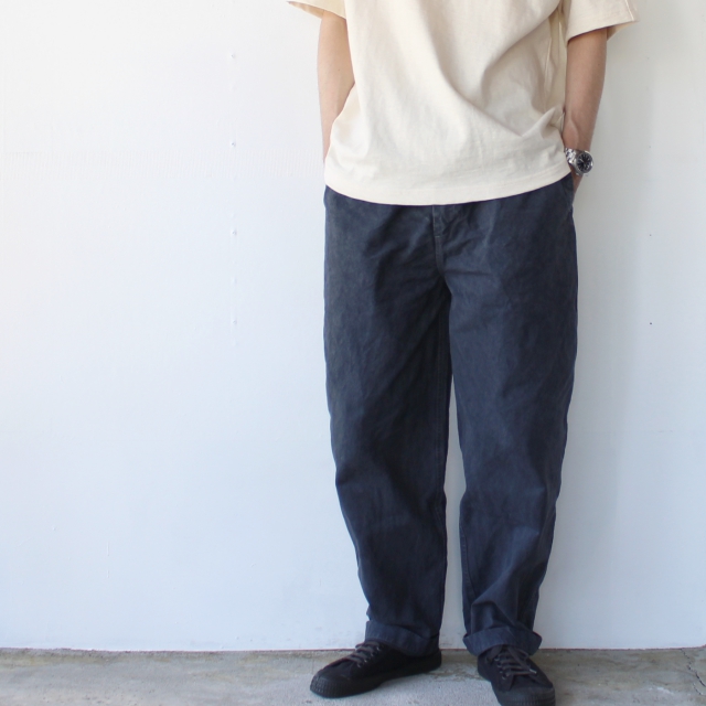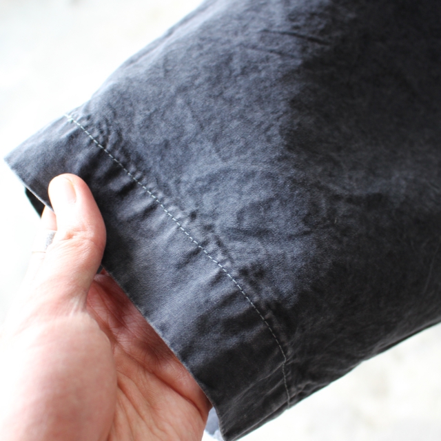 ムラのある製品染めに洗いを加え、若干色落ちして着古したような風合いに仕上げています。