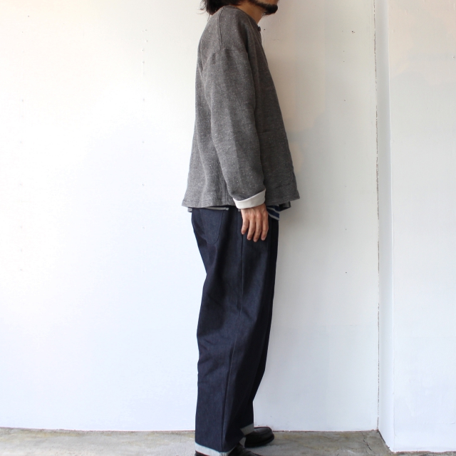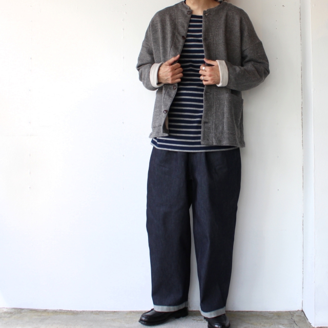スウェットのようなふっくらした質感に、表面はネップ感のあるカジュアルな印象が魅力の生地です。