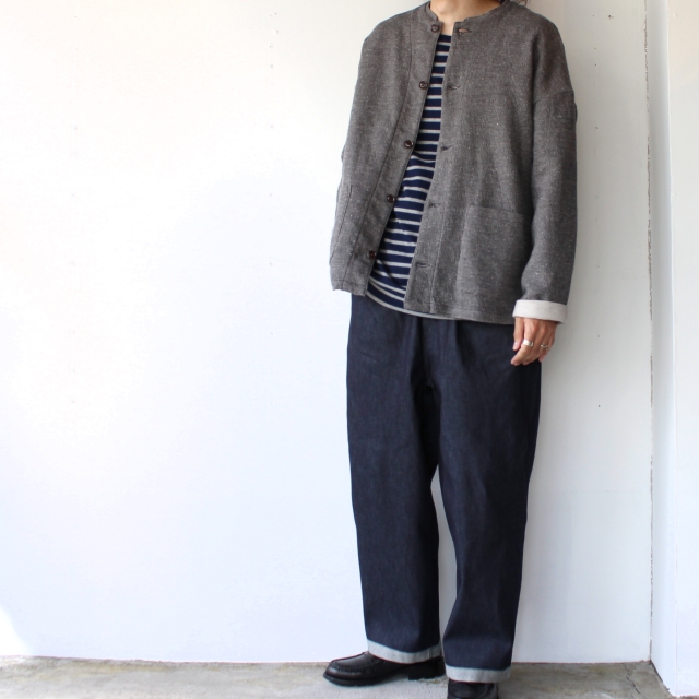 定番のアトリエジャケットを若干大きめにリサイズしたモデルです。