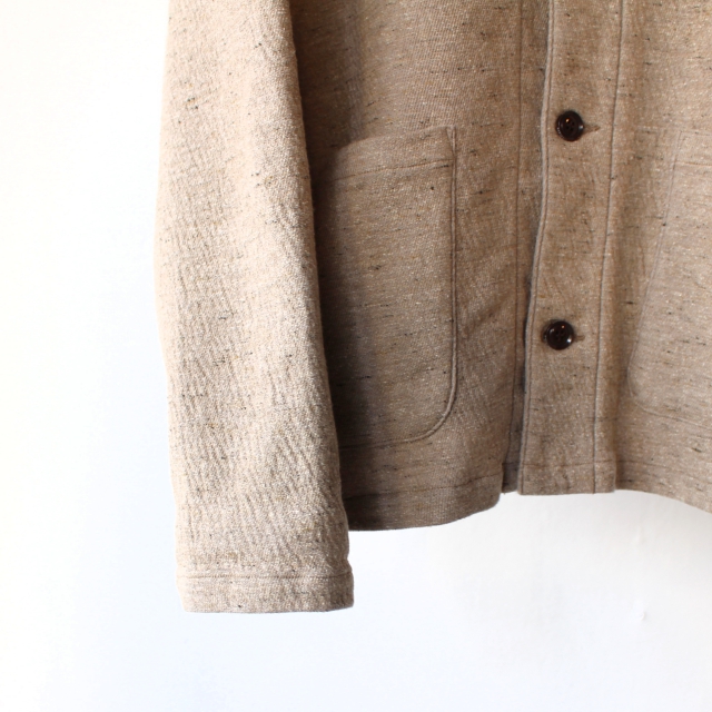 スウェットのようなふっくらした質感に、表面はネップ感のあるカジュアルな印象が魅力の生地です。