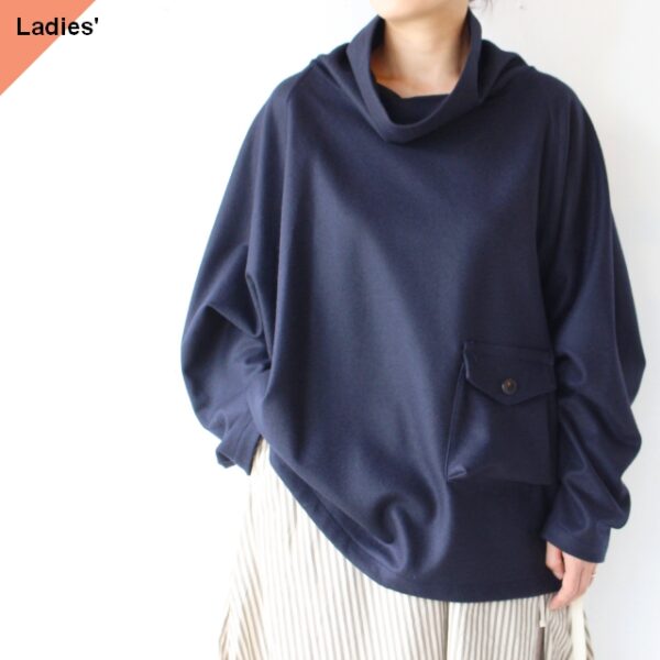ルーズなネックデザイン、ラグランスリーブなどリラックス感を演出しつつ、ウール生地の上質な光沢感がHAVERSACKらしい1枚。