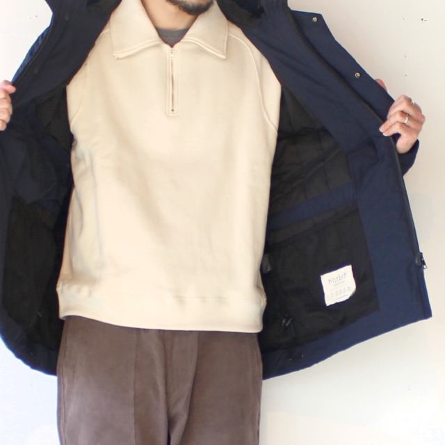 フロントにはパッチポケットが付き、そのサイドにもウォームポケット、身頃内側の腰部分にネットポケットなど便利機能も満載。