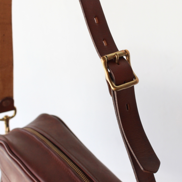 伝統的な鋳物や真鍮無垢の金具も皮革に合わせてエンジング加工しました。レザーと共に経年変化を楽しめます。