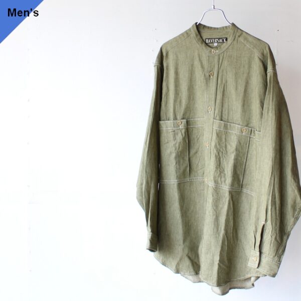 HAVERSACKよりC/Lグリーンデニムバンドカラーシャツ。