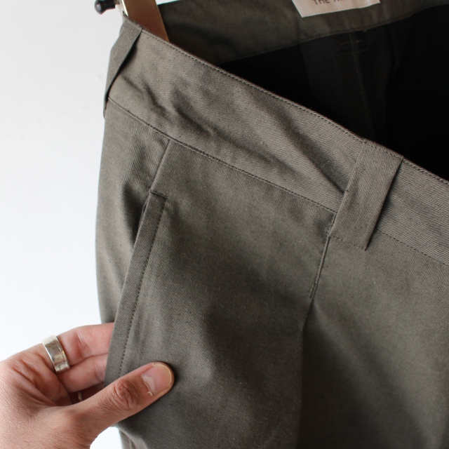 チノよりも生地は柔らかなツイルを使用し、ややドレープ感も感じられる大人の雰囲気が最高です。