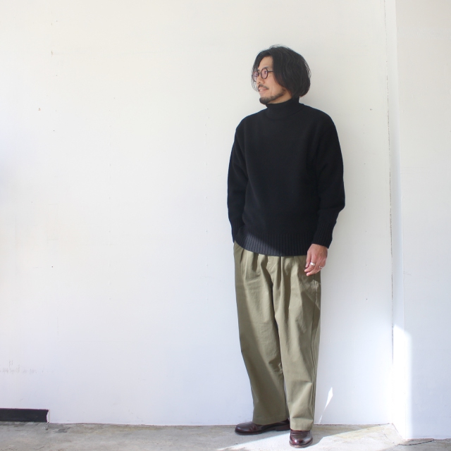 タートルネック、裾のリブ仕様、袖の付け方などは丁寧に再現しつつ、身幅には少しゆとりを持たることで洋服好きも納得の一枚に仕上がっています。