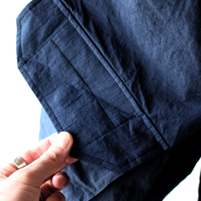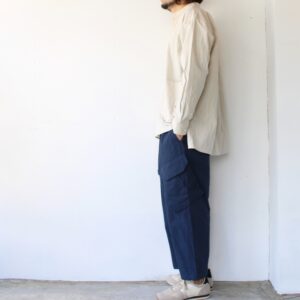 斜め付けのカーゴポケットや、ウェストのアジャスター、また部分の補強、裾のドローコードなどはオリジナルを踏襲しつつ、ステッチワークやメタルボタン、全体のシルエットに変化を出したanother 20th centuryらしい一本。