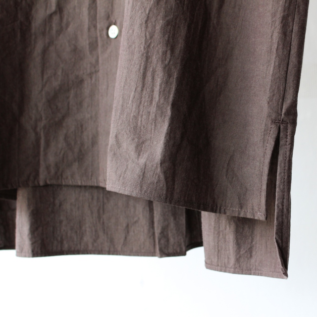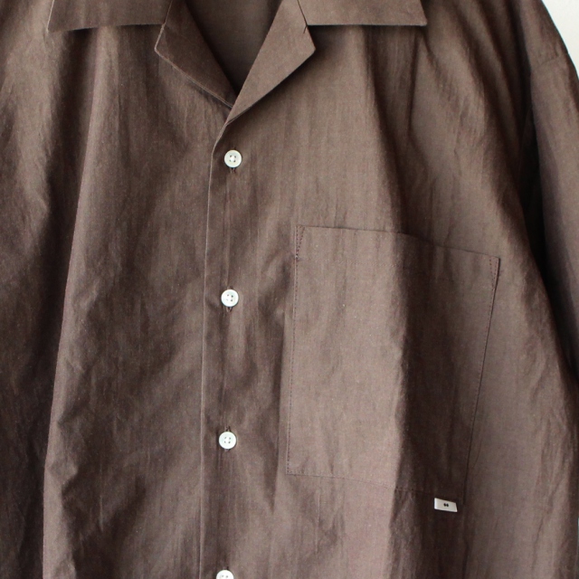 シャンブレー生地を使用した、ざっくりとしたリラックスシルエットの開襟シャツ。