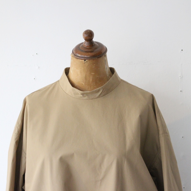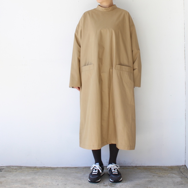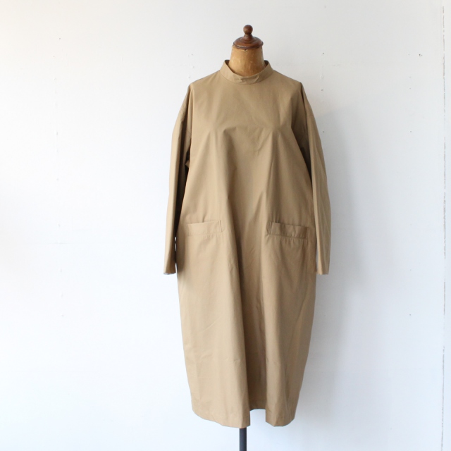 ハイネックデザインをベースに、ゆったりしたAラインのシルエット、フロントにはポケットを備えたシンプルでありながら主役になるワンピースです。