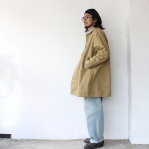 身幅をたっぷり取り、ざっくり羽織れるオーバーシルエットのハーフコート。