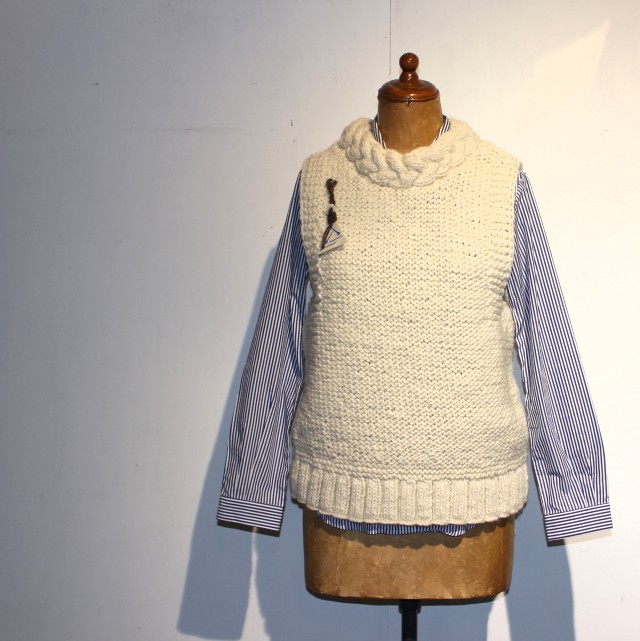 ネパールでの手編みによるニットで、温かみのある編地です。