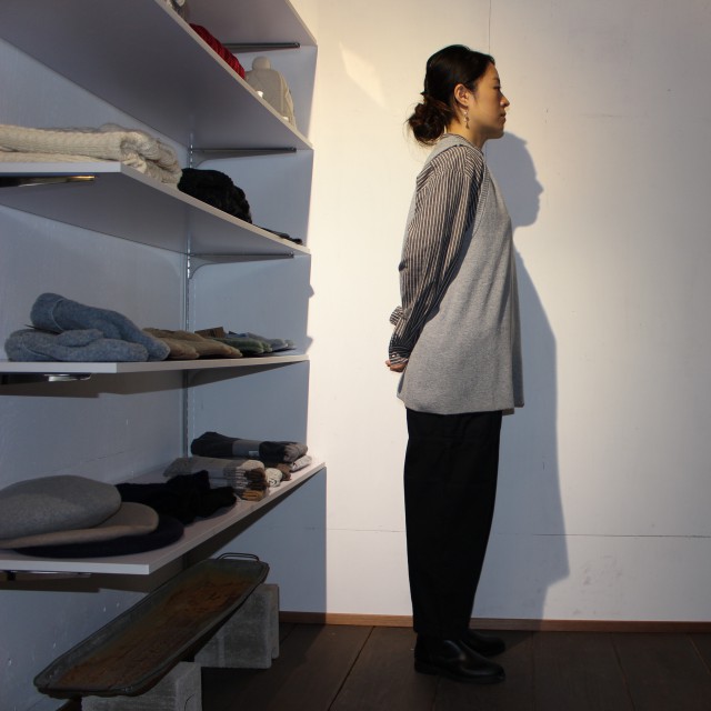 脇から背中裏にかけて、特殊な編み方をすることで独特なフレアーしたシルエットを表現。
