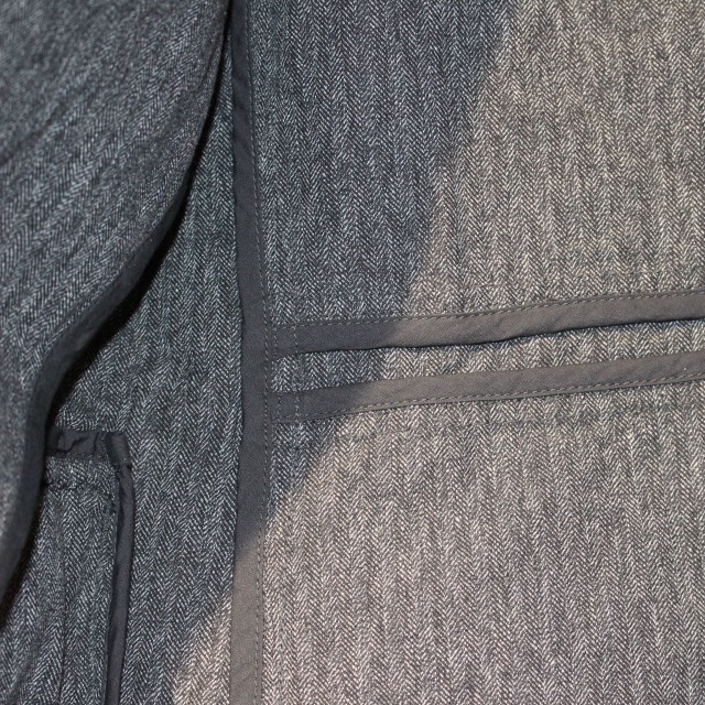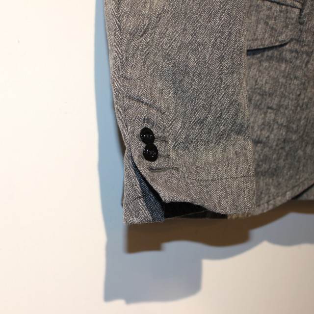 首元のチンストラップ、襟裏のダイヤモンドステッチ、袖の本切羽仕様、生地裏のパイピング処理など随所に丁寧な仕上がりがみられるジャケットです。