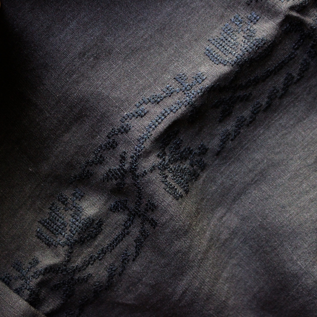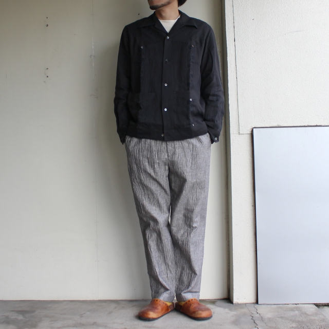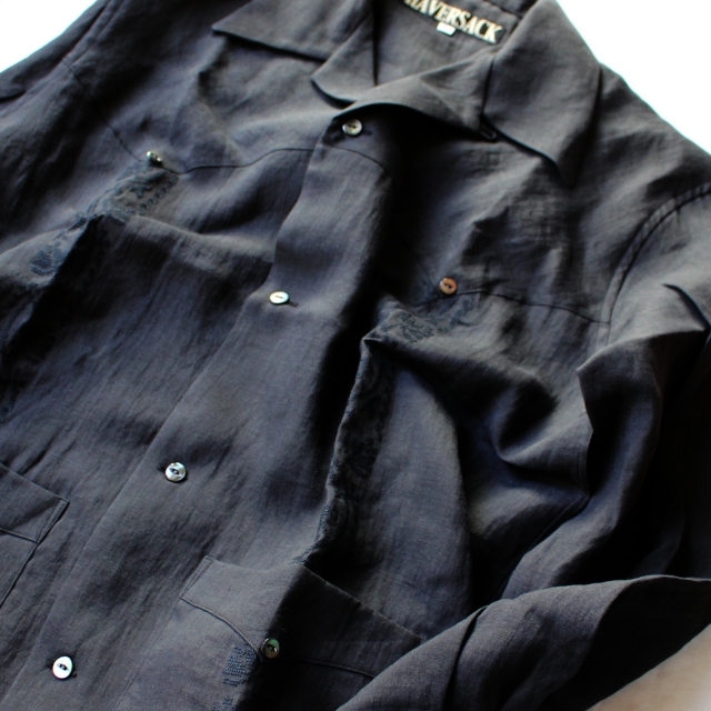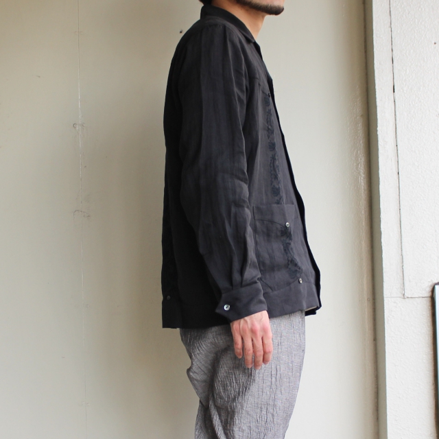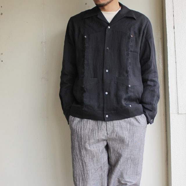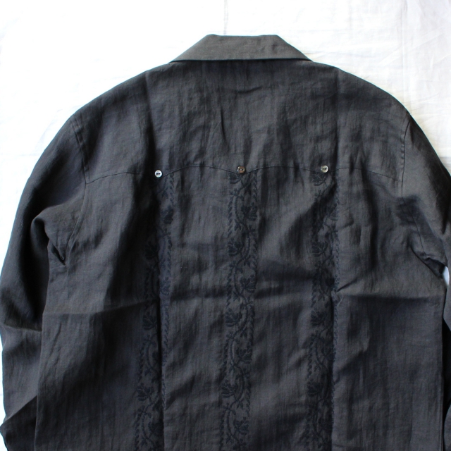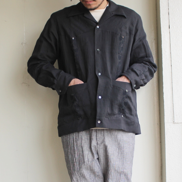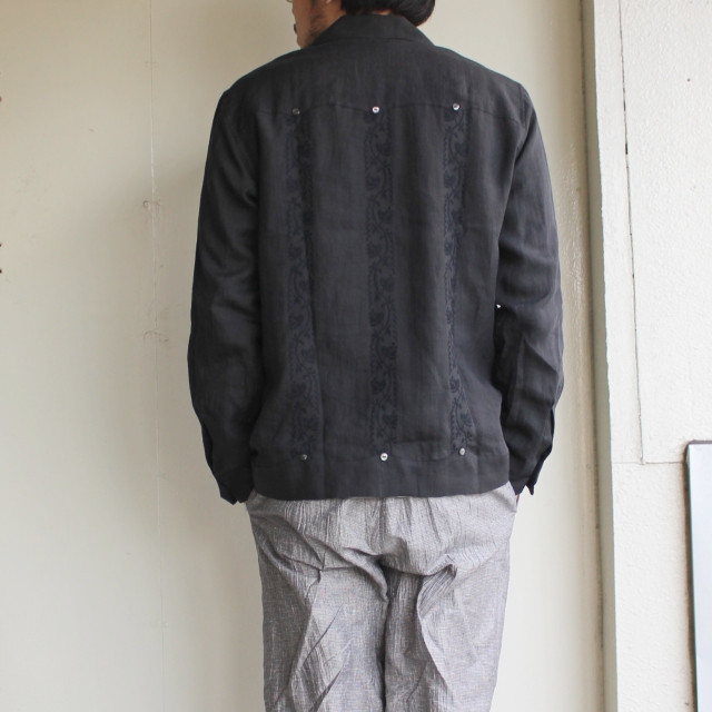 ヴィンテージのグアヤベラ(キューバ)シャツをもとに、細かな刺繍や飾りボタンなどを丁寧に施し完成させた一枚。