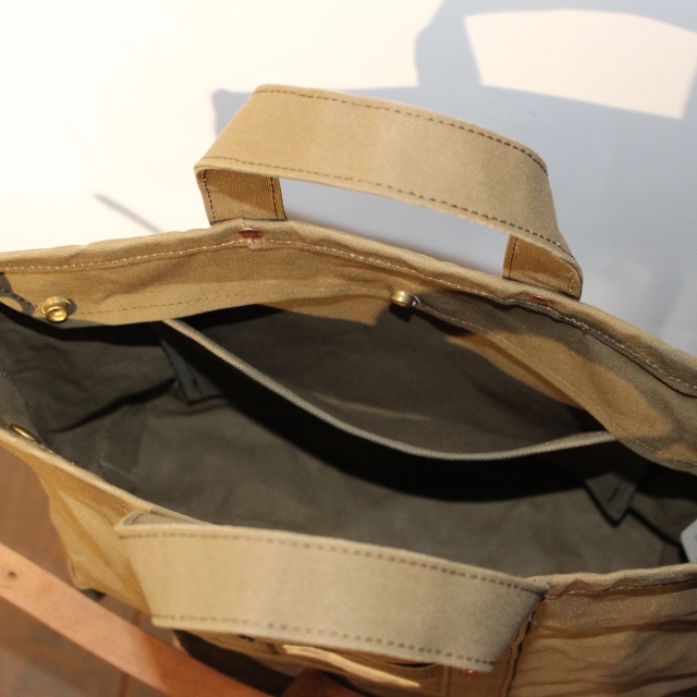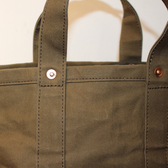パラフィン(蝋)を配合したオイルワックスを染み込ませた9号帆布(キャンバス)を使用。