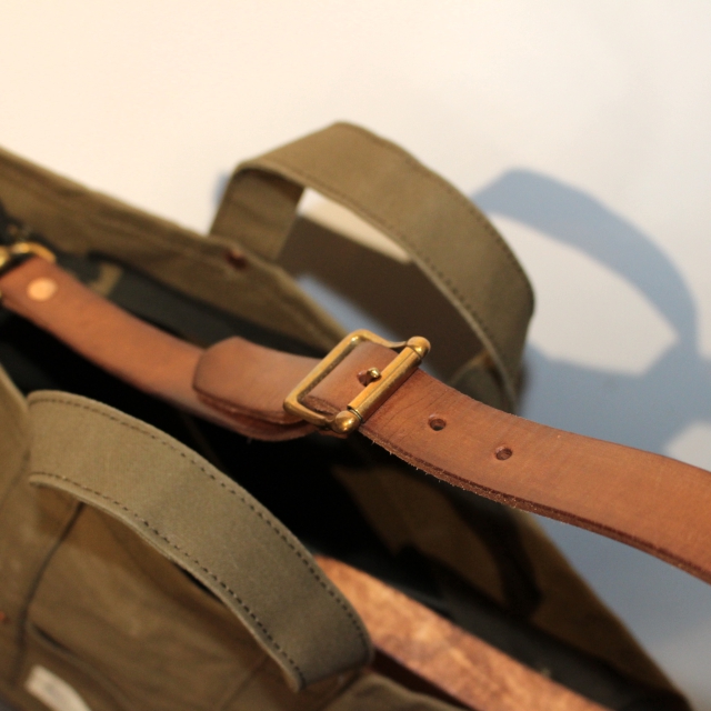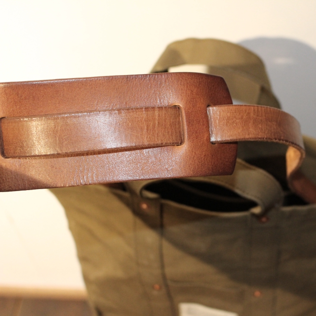 ショルダーは姫路産のベジタブルタンニンレザーを伝統的な手染め製法で染め上げたオリジナルレザー「オールドオイル」を使用しています。