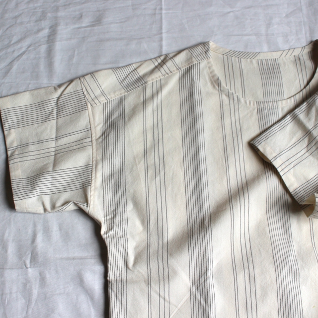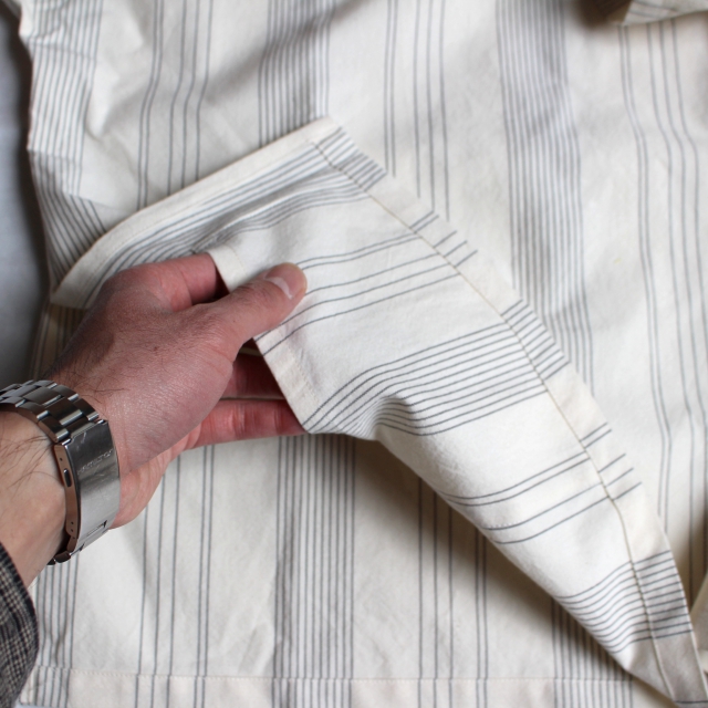 オリジナルで制作したストライプ柄のオーガニックコットン生地。