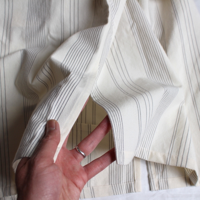 脇は深めのスリットあきで、内側には隠しポケットを付ける遊び心もポイントです。