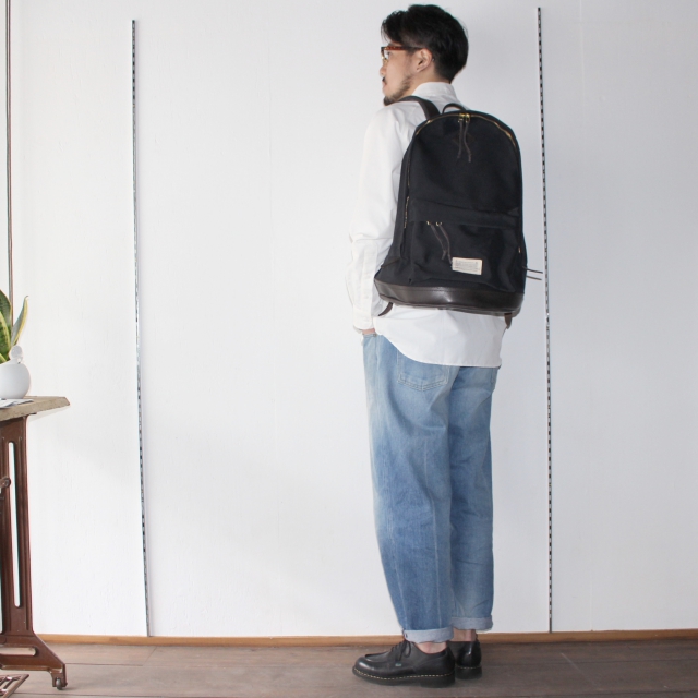 当時、ハイテク素材よりも耐久性が高いことで主流とされていたレザーボトム&レザーショルダーをリバイバルし、生地はレザーと共に経年変化を楽しめるコットンナイロンを使用。