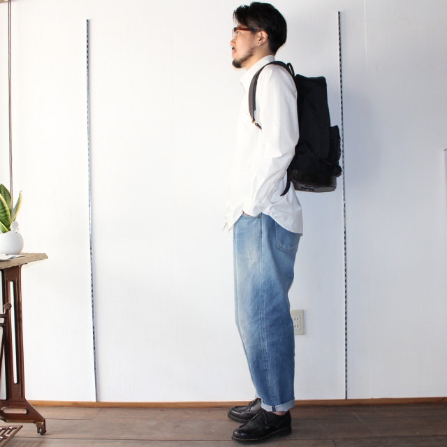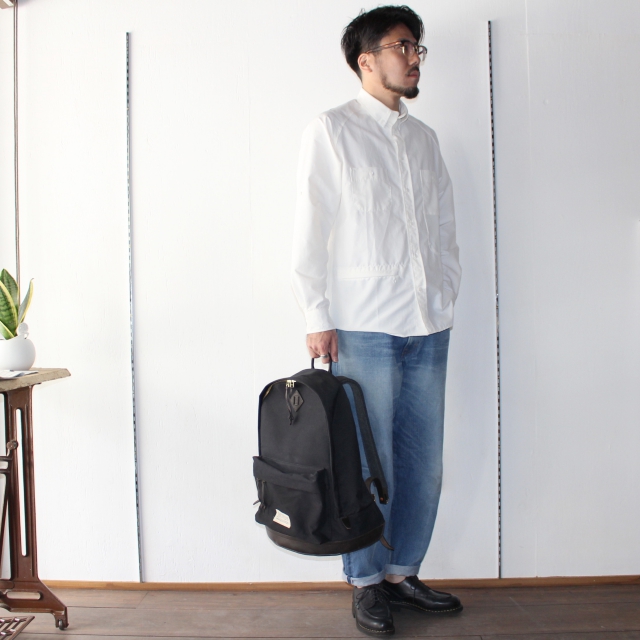 当時、ハイテク素材よりも耐久性が高いことで主流とされていたレザーボトム&レザーショルダーをリバイバルし、生地はレザーと共に経年変化を楽しめるコットンナイロンを使用。