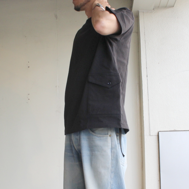 ゆったりしたシルエットに左脇のカーゴポケットが特徴的なカットソー。