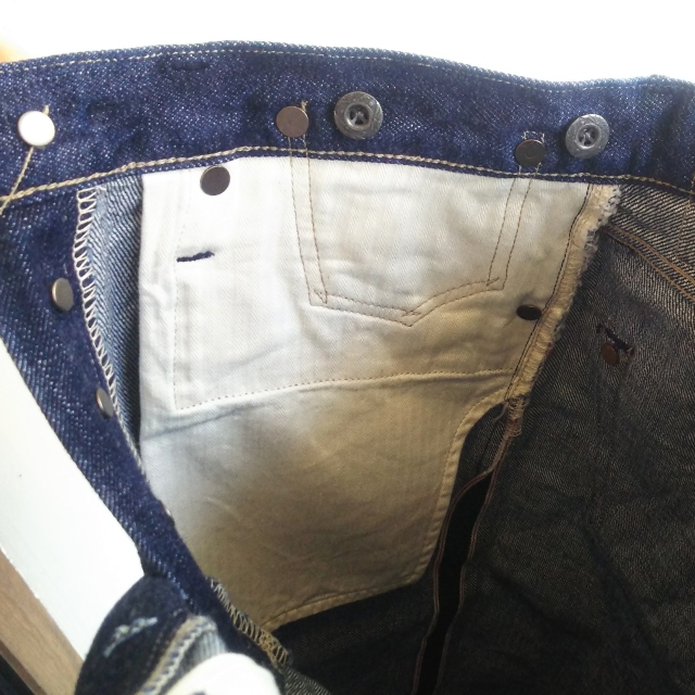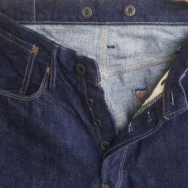 13.0セルヴィッジデニムを使用し、革パッチの一筆縫い、ベルトループのバンザイ縫製、サスペンダーが取り付けられるサスペンダーボタンなど丁寧に作りこまれたディテールが満載です。