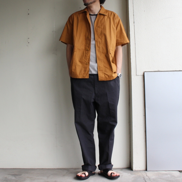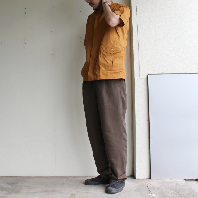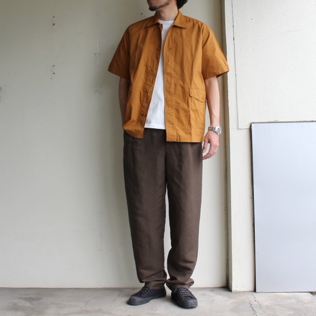 Soundmanよりカーゴポケット付きの開襟シャツ。