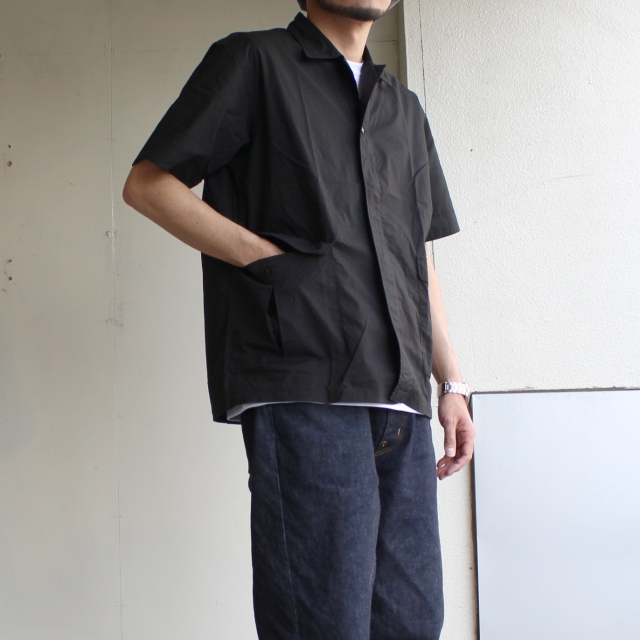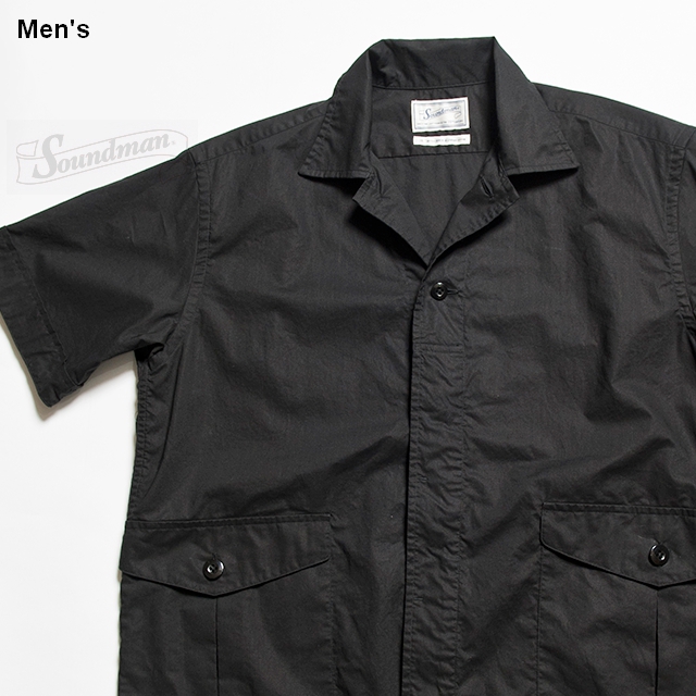 Soundmanよりカーゴポケット付きの開襟シャツ。