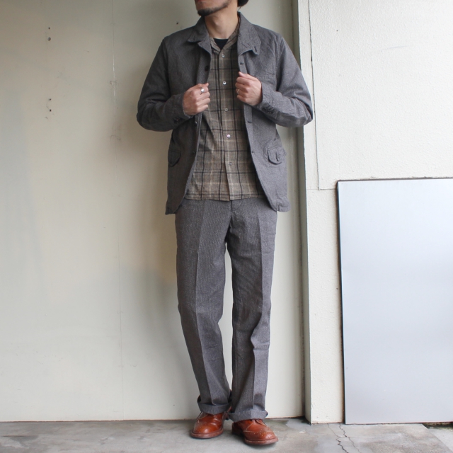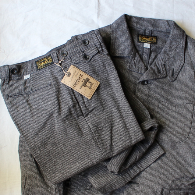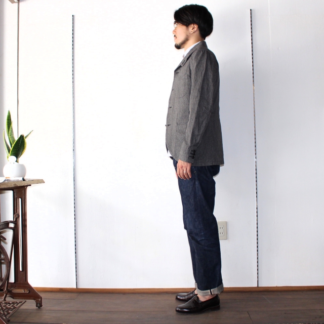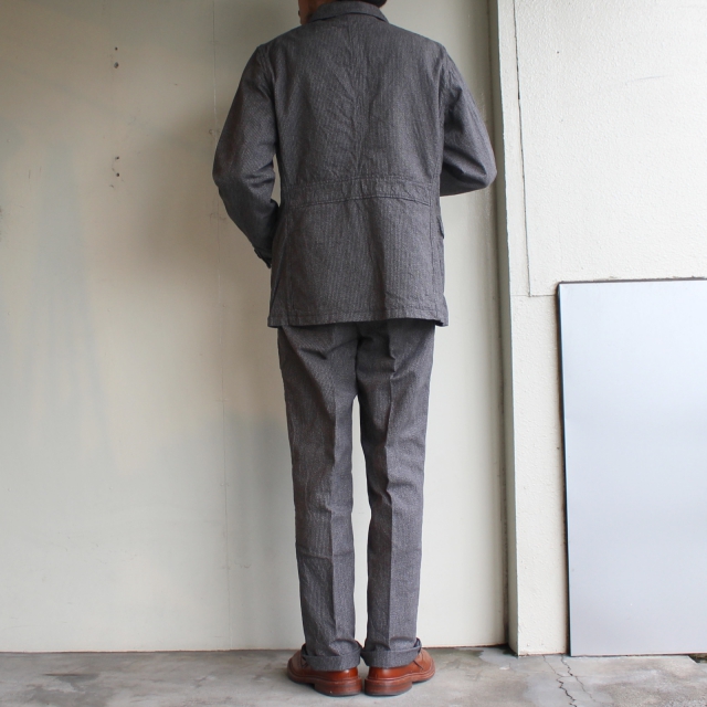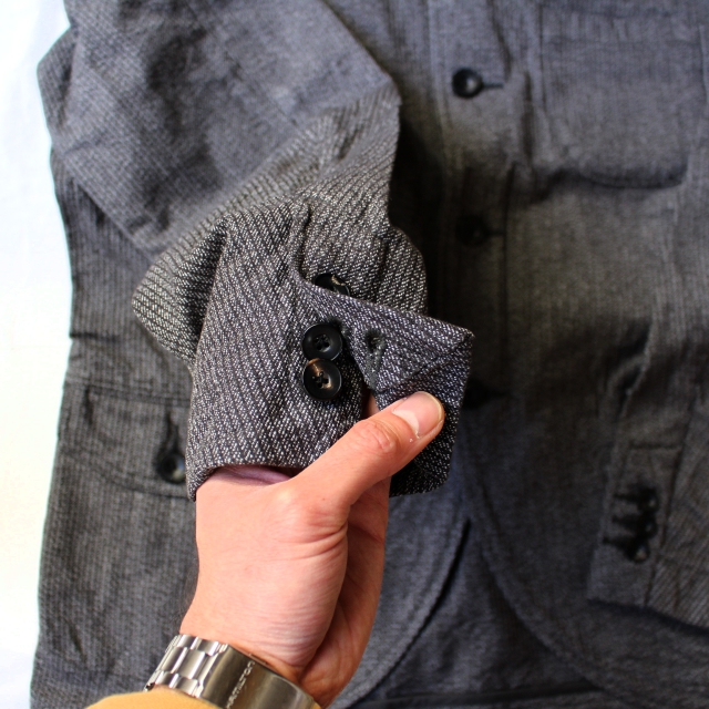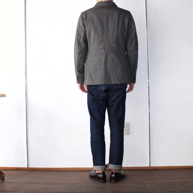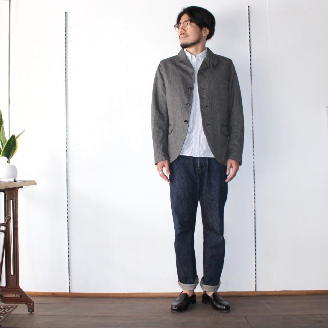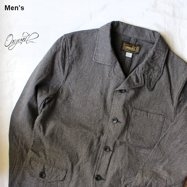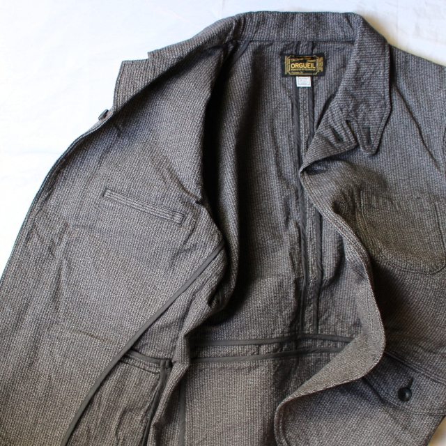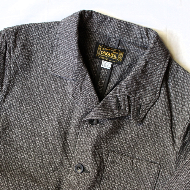 定番のサックジャケット(OR-4012)よりも、少し柔らかいストライプ調の織柄があるコットン生地を使用。