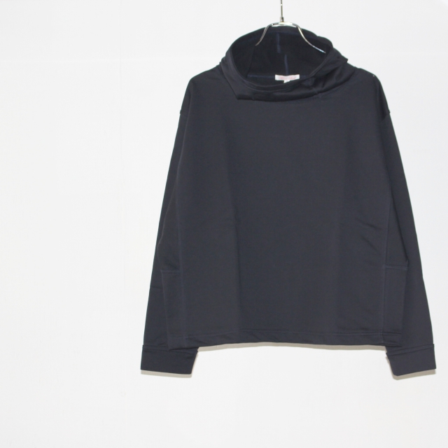 ハイネック、ドルマンスリーブの緩やかなシルエットが女性らしさもあります。