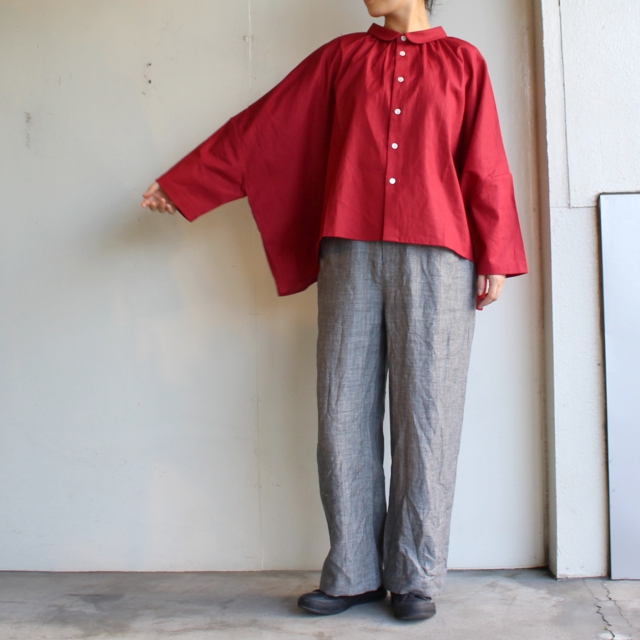 コットンとリネンをブレンドしたシーチング生地を用いたブラウス。