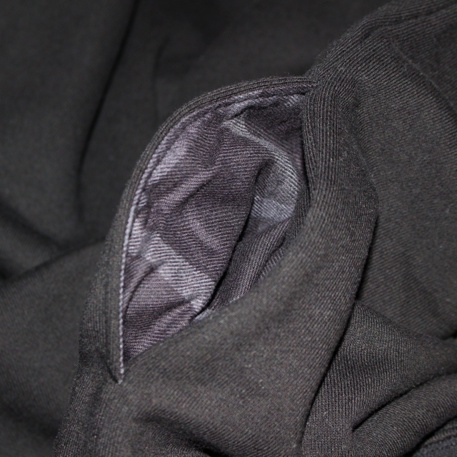 スウェットと言えばカンガルーポケットが多いですが、あえてスラッシュポケットに。(外付けでなく、切り込みを入れるようなポケット)