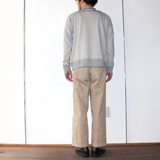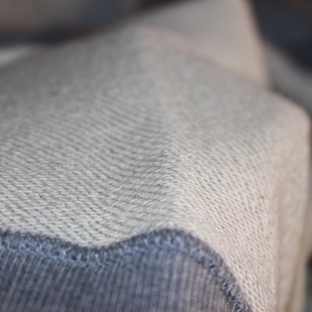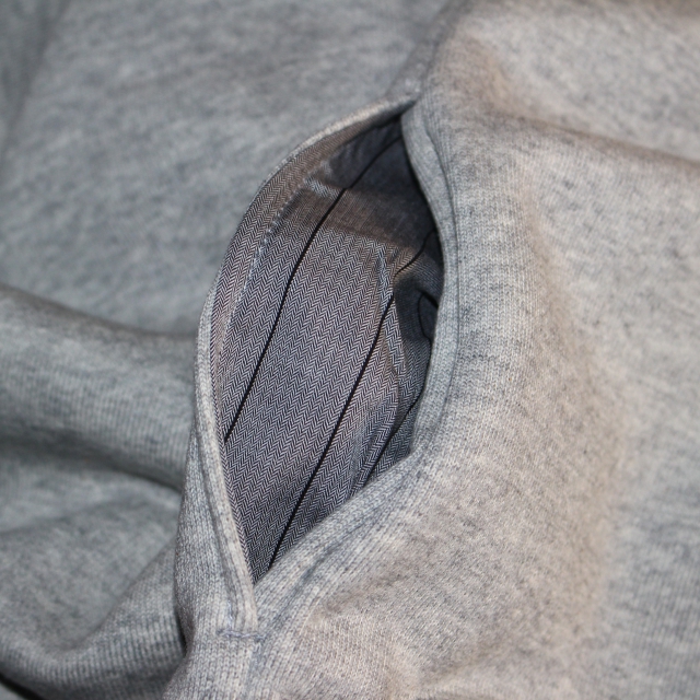 スウェットと言えばカンガルーポケットが多いですが、あえてスラッシュポケットに。(外付けでなく、切り込みを入れるようなポケット)
