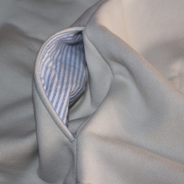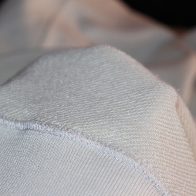 スウェットと言えばカンガルーポケットが多いですが、あえてスラッシュポケットに。(外付けでなく、切り込みを入れるようなポケット)