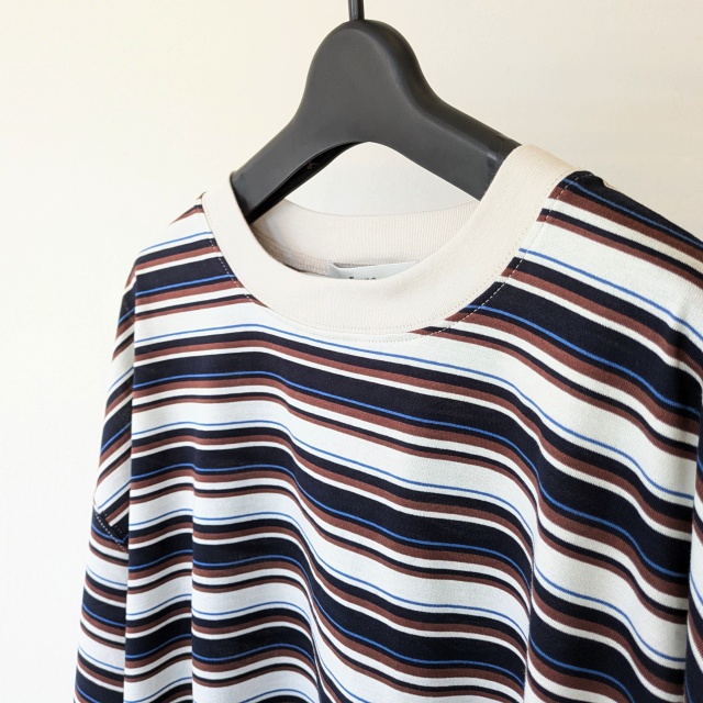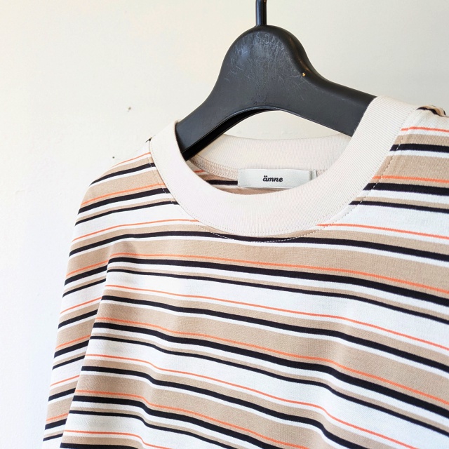 クラシカルなサーフルックを感じさせるボーダーの配色と、amneらしいクリーンな世界観が融合した上質なカットソー。