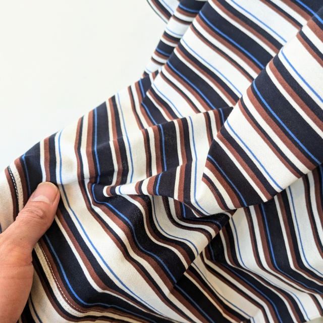 薄く軽いタッチでもボーダー柄のおかげで透け感が少ないのがポイント。