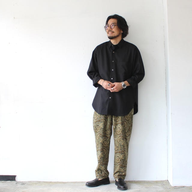 生地の上品さと、シルエットのリラックス感が絶妙なバランスです。