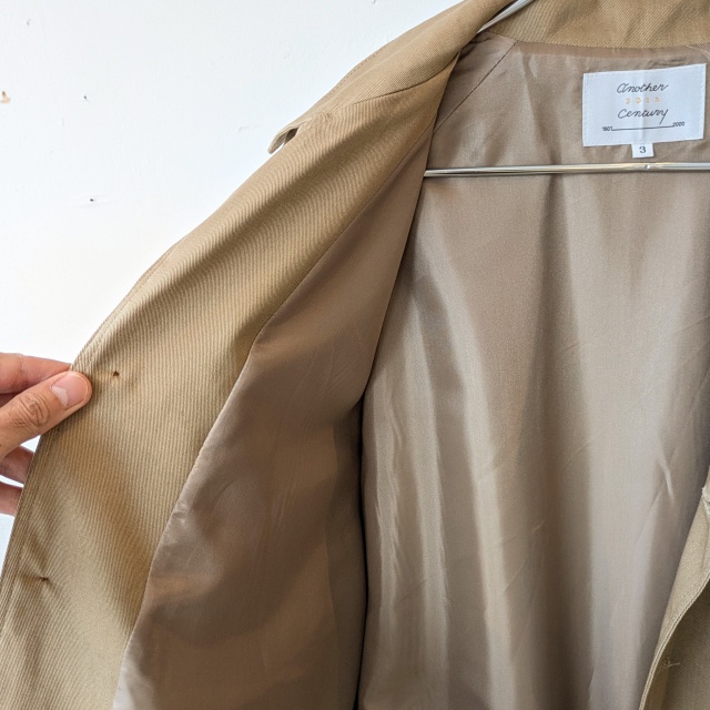 胸ポケット、腰にはハンドウォームポケットを備えた実用性から、裏地はポリエステル生地の総裏仕様と、作り込みがさすがともいえるジャケットです。。