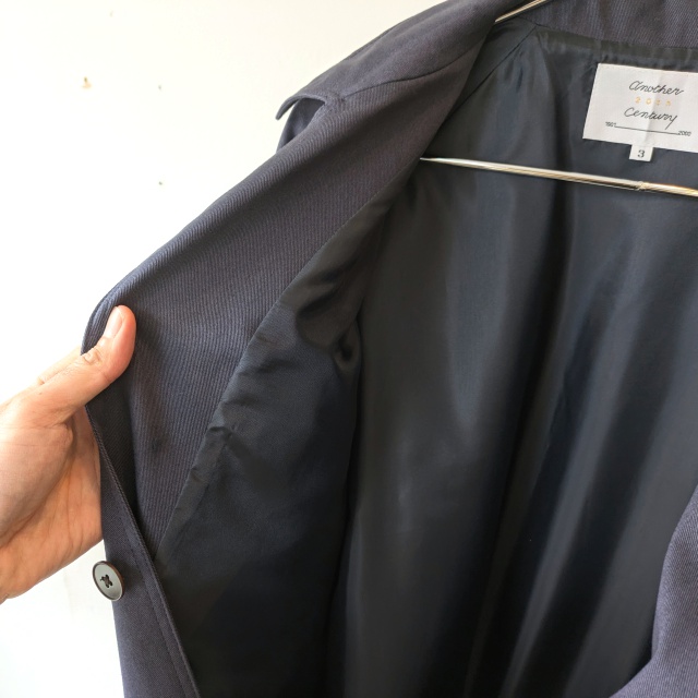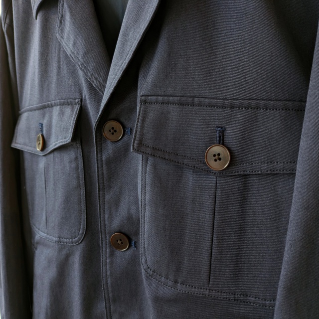 胸ポケット、腰にはハンドウォームポケットを備えた実用性から、裏地はポリエステル生地の総裏仕様と、作り込みがさすがともいえるジャケットです。。