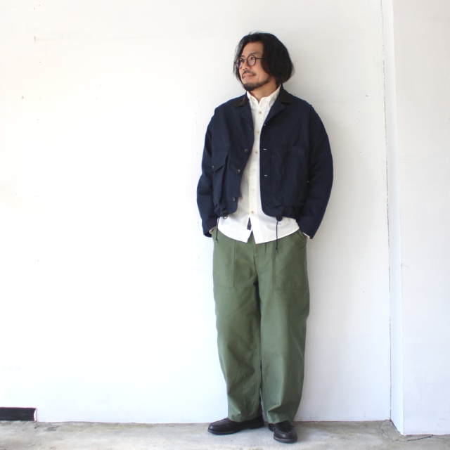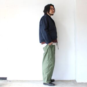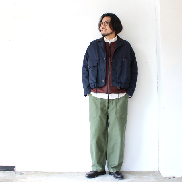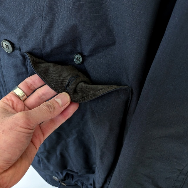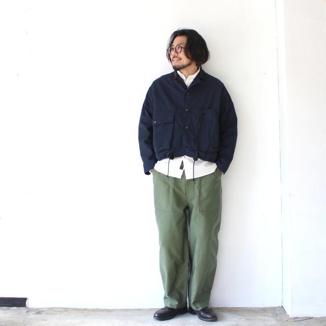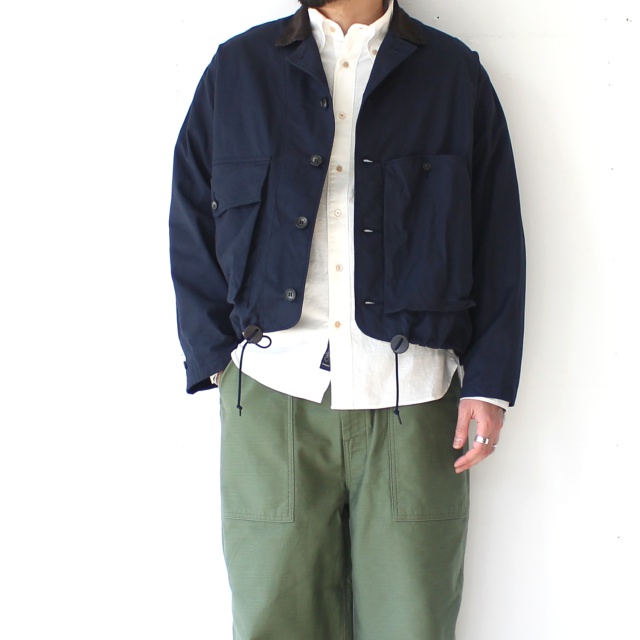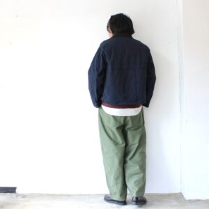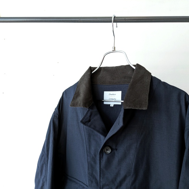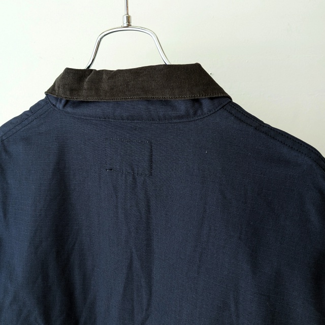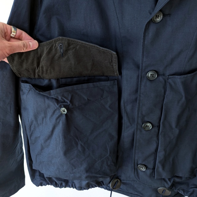 襟とフロントポケットの内側には細畝コーデュロイ、肩回りはアクションプリーツで腕の可動域を確保してるのも◎
