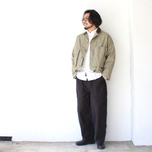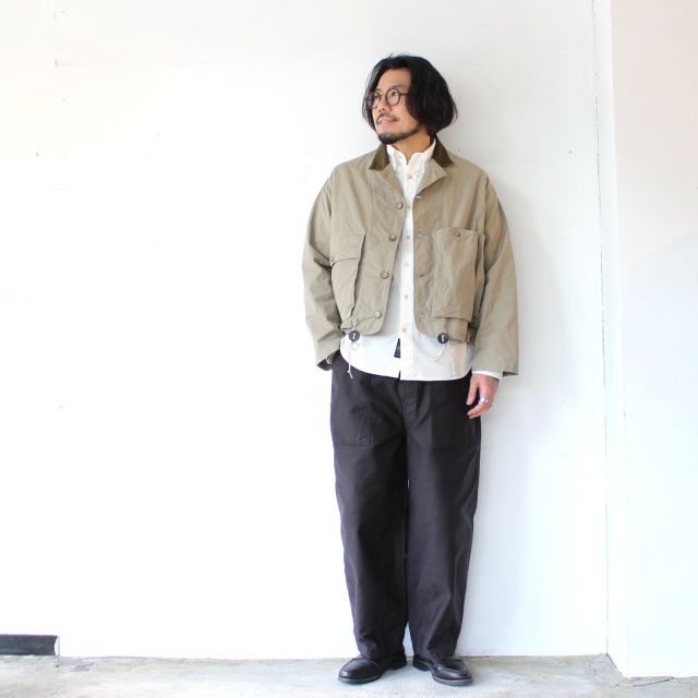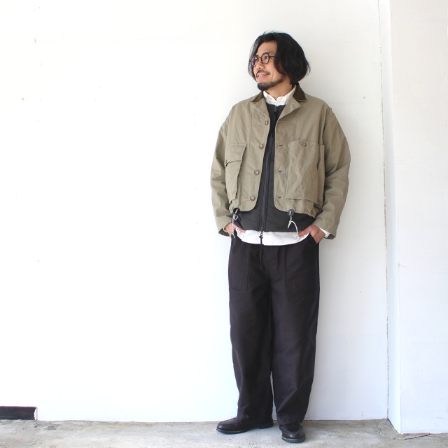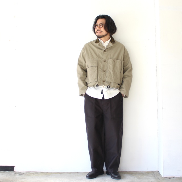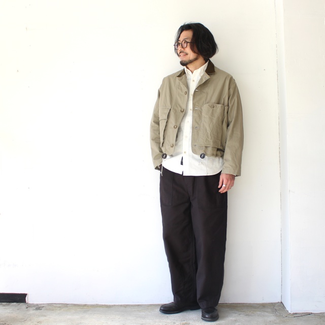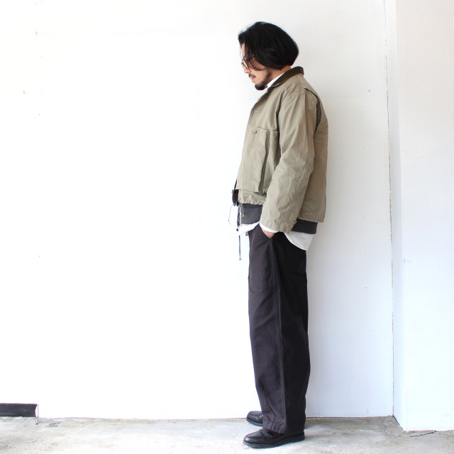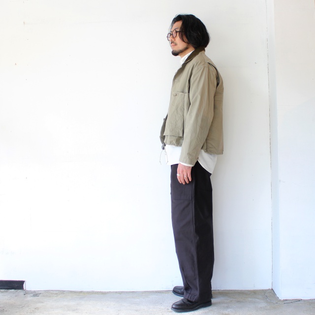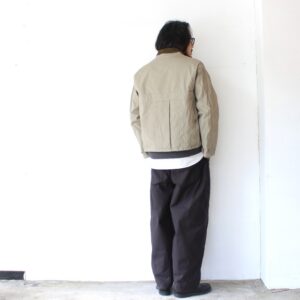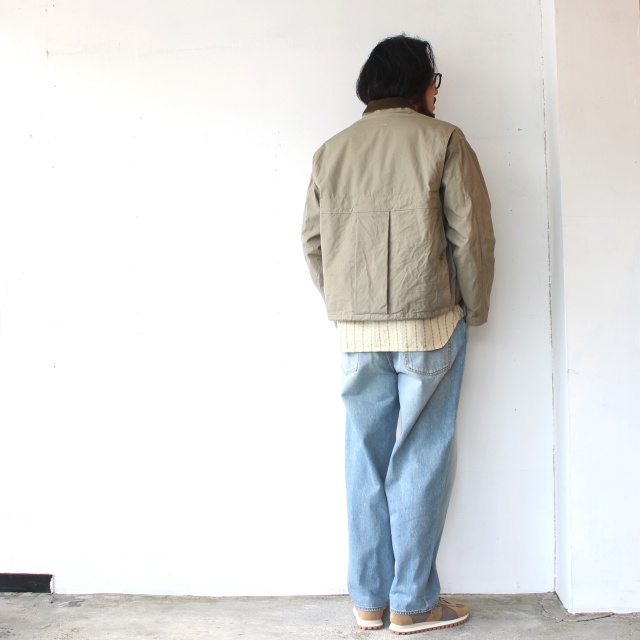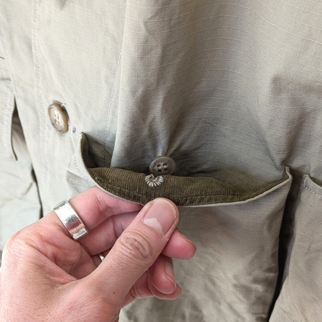 襟とフロントポケットの内側には細畝コーデュロイ、肩回りはアクションプリーツで腕の可動域を確保してるのも◎