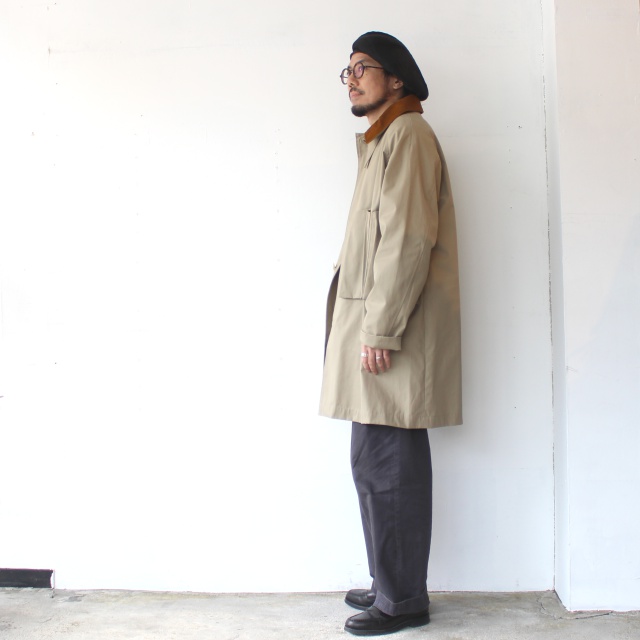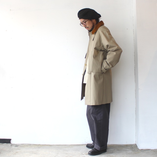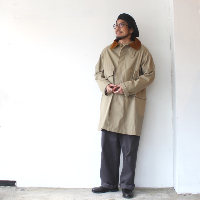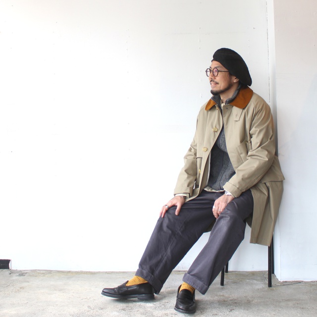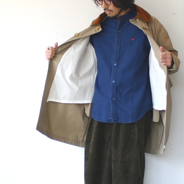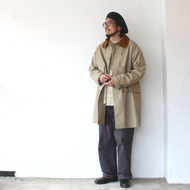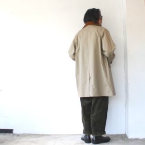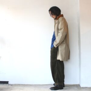 少し大きめの襟に配色のコーデュロイ素材、そんなクラシックさとシルエットとのギャップが特徴でもあります。