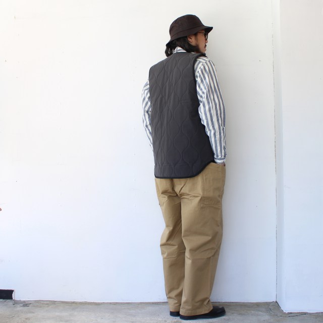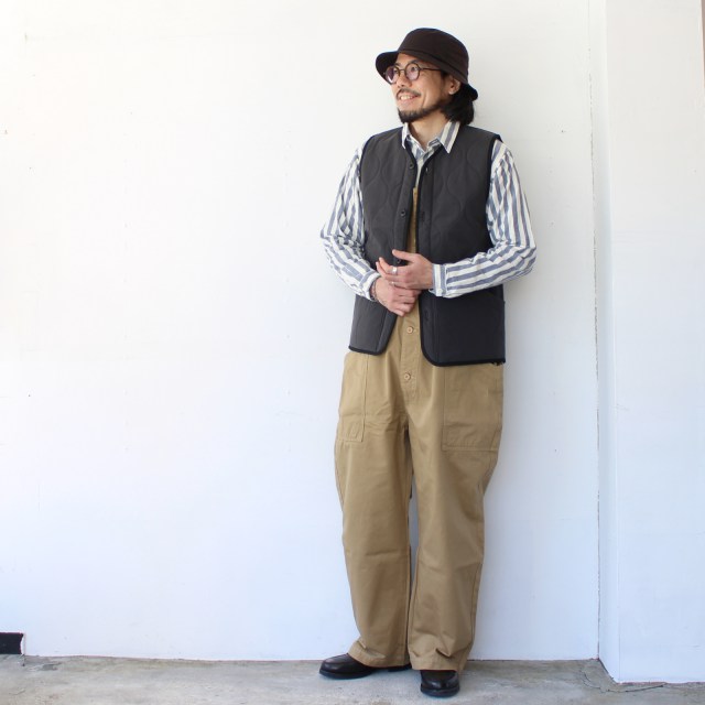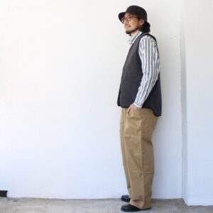 猫目ボタンやトリプルステッチ、フラップポケットなどワーク感を散りばめつつ、シルエットはややゆったり。