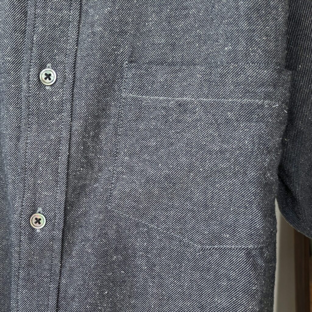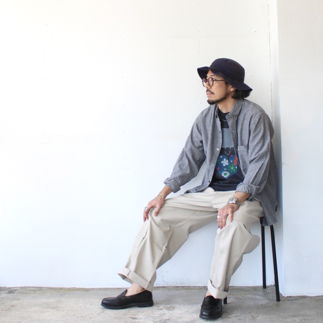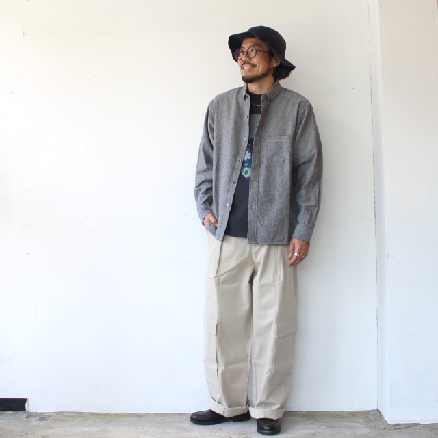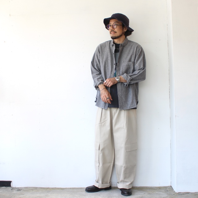 フレンチワークのブラックシャンブレーからインスピレーションを受け、オリジナルシルエットのボタンダウンシャツに構築。